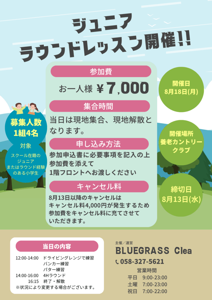 対象 スクール在籍のジュニア またはラウンド経験のある小学生