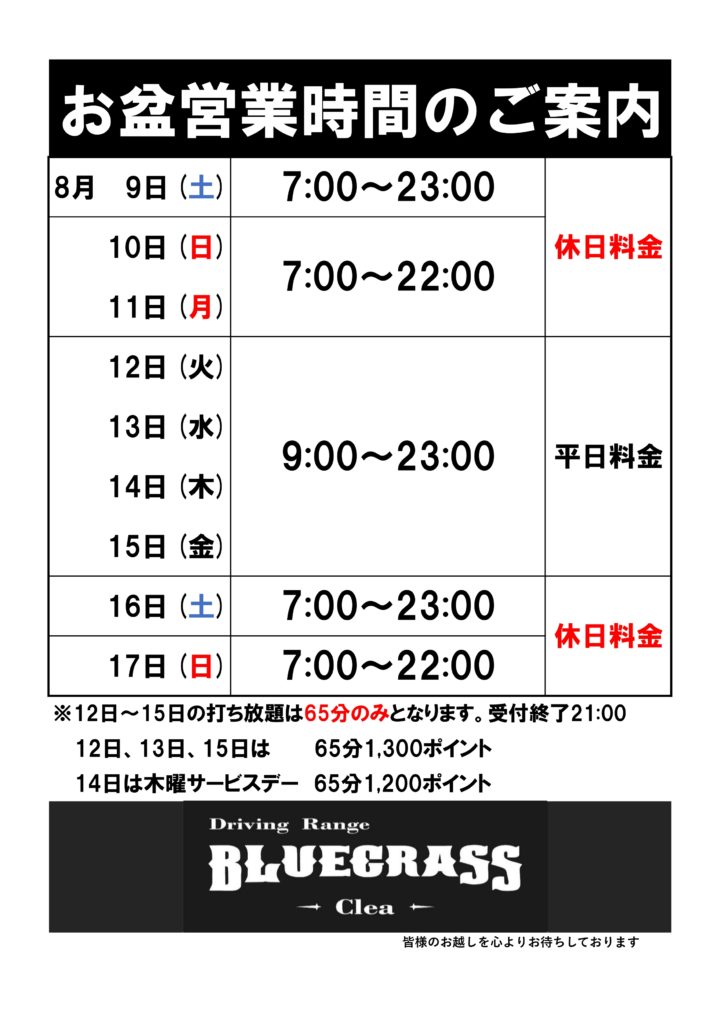 ※8月12日、13日、15日の打ち放題は65分1,300Pのみとさせていただきます。