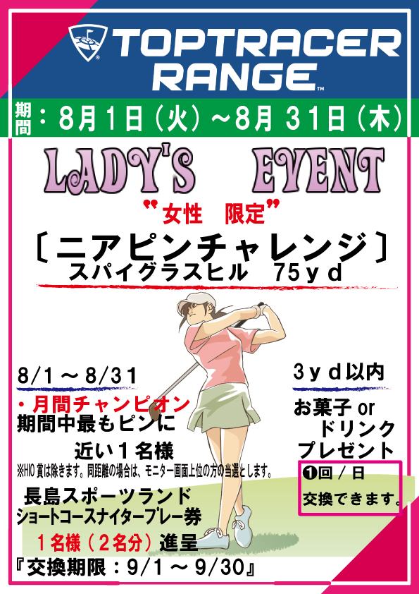 8月トップトレーサー・レンジ レディースイベント案内です。