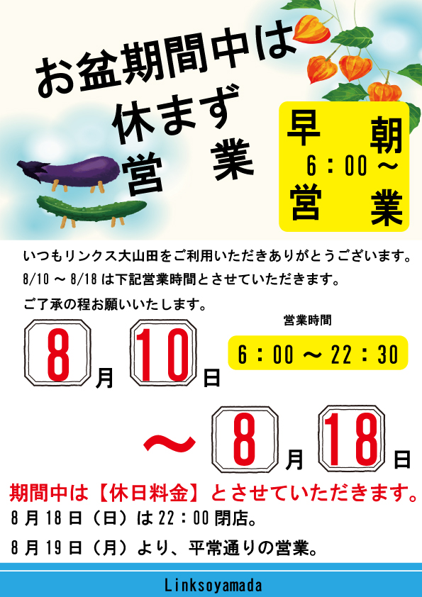 お盆期間中は休まず営業!