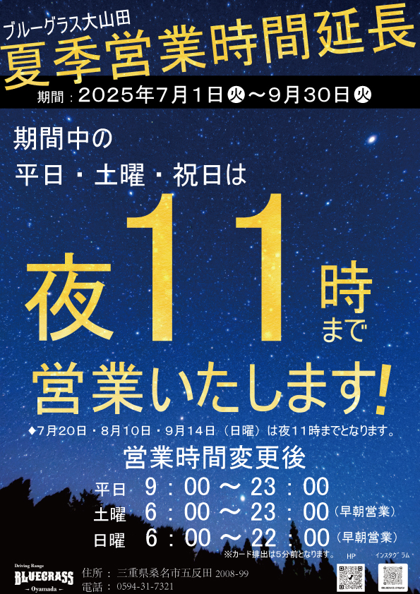 夏イベ第1弾! 夏季営業時間延長!