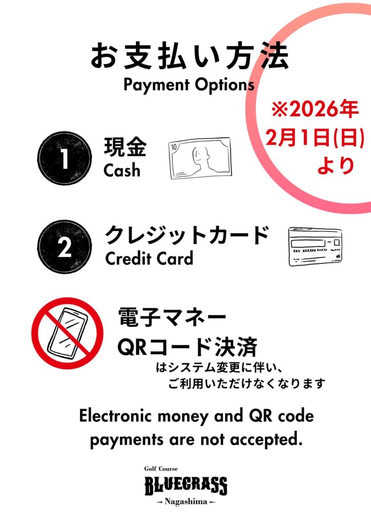 電子マネーおよびQRコード決済はご利用いただけなくなり、現金またはクレジットカードでのお支払いのみとなります。何卒ご理解とご協力をお願い申し上げます。