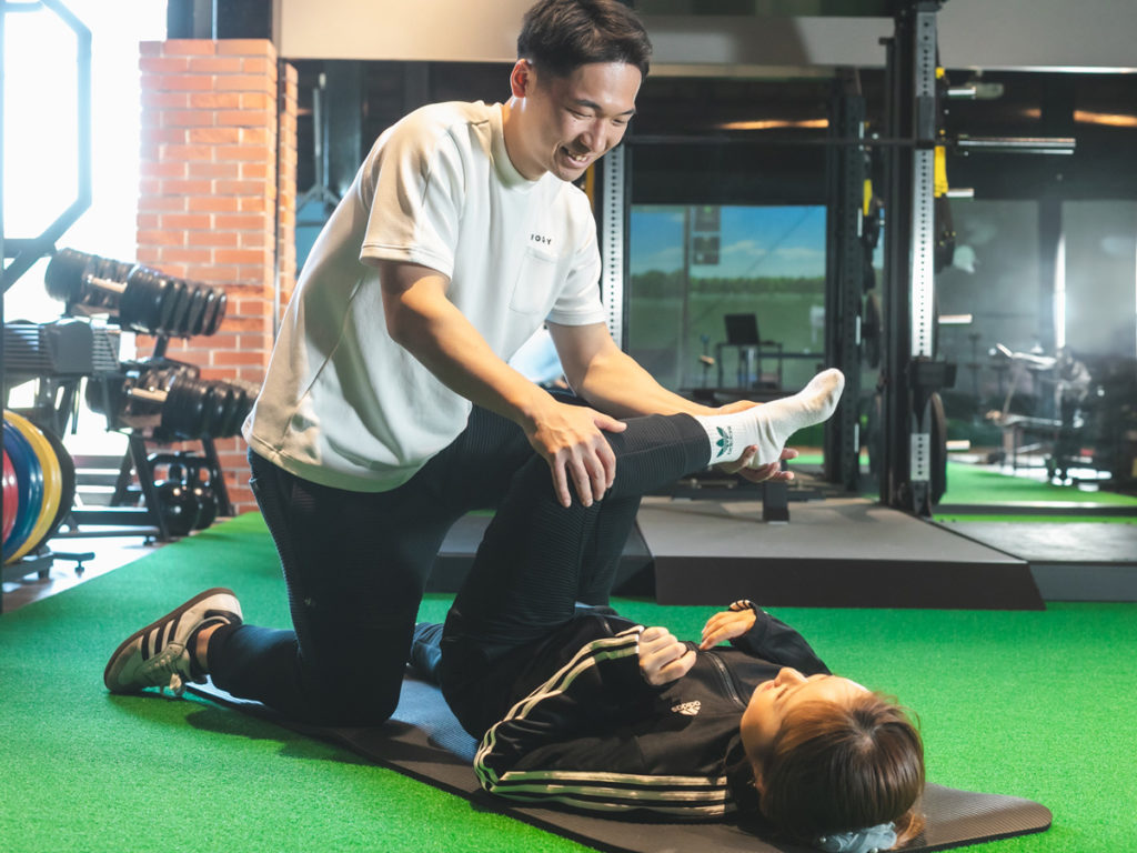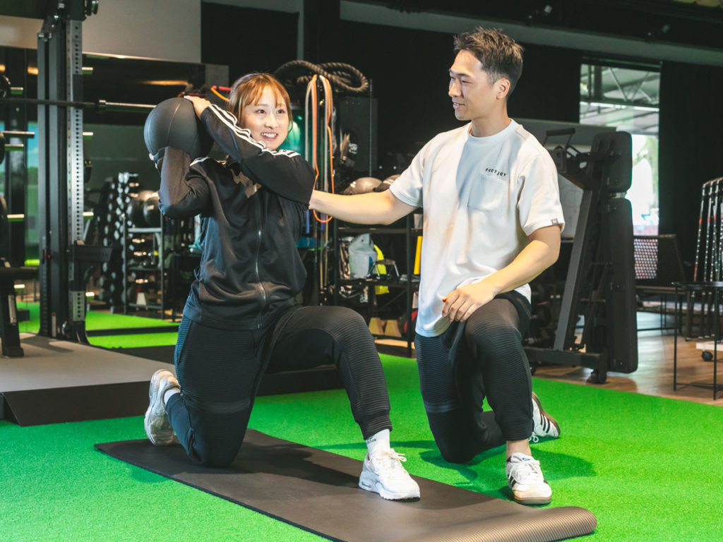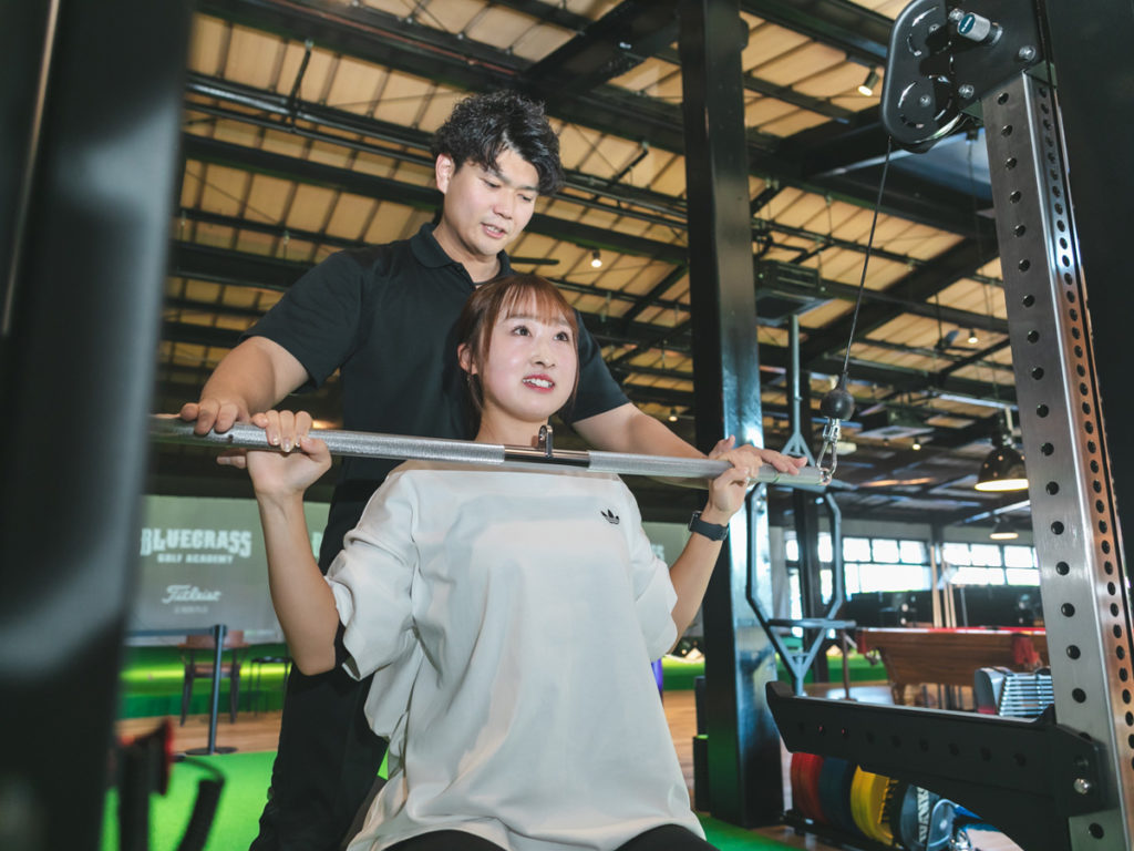 トレーナーがトレーニング理論に基づいたトレーニングを指導。