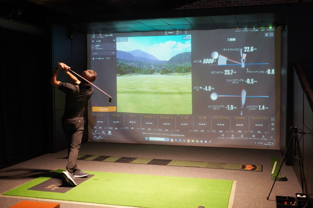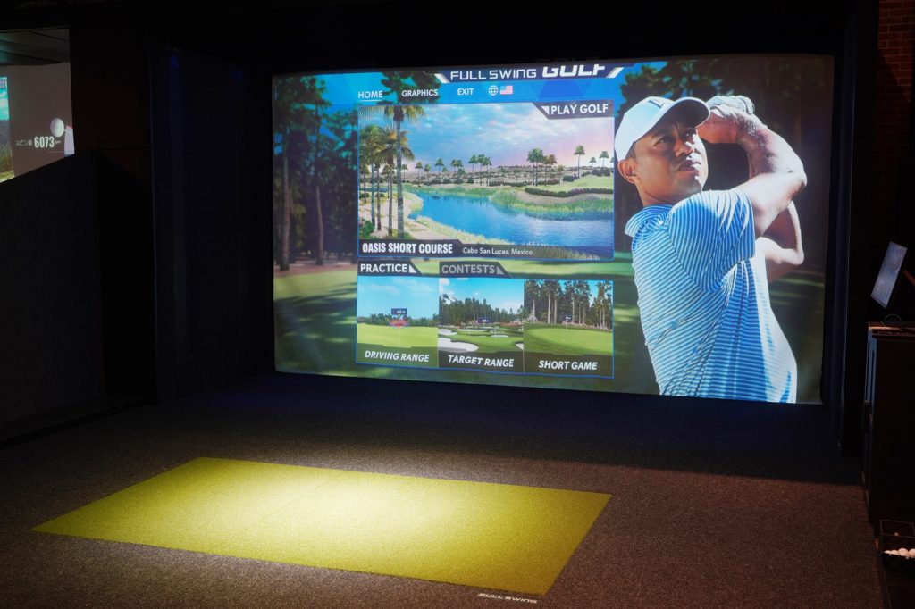 バーチャルコースで対戦が可能!超リアルな高性能シミュレーター。タイガーウッズや渋野日向子などがホストプロを務め、自宅に設置し練習で使用しているほど、正確なデータとグラフィックも鮮やかでまるで打ったボールが画面に吸い込まれるような超リアルな高性能シミュレーター。