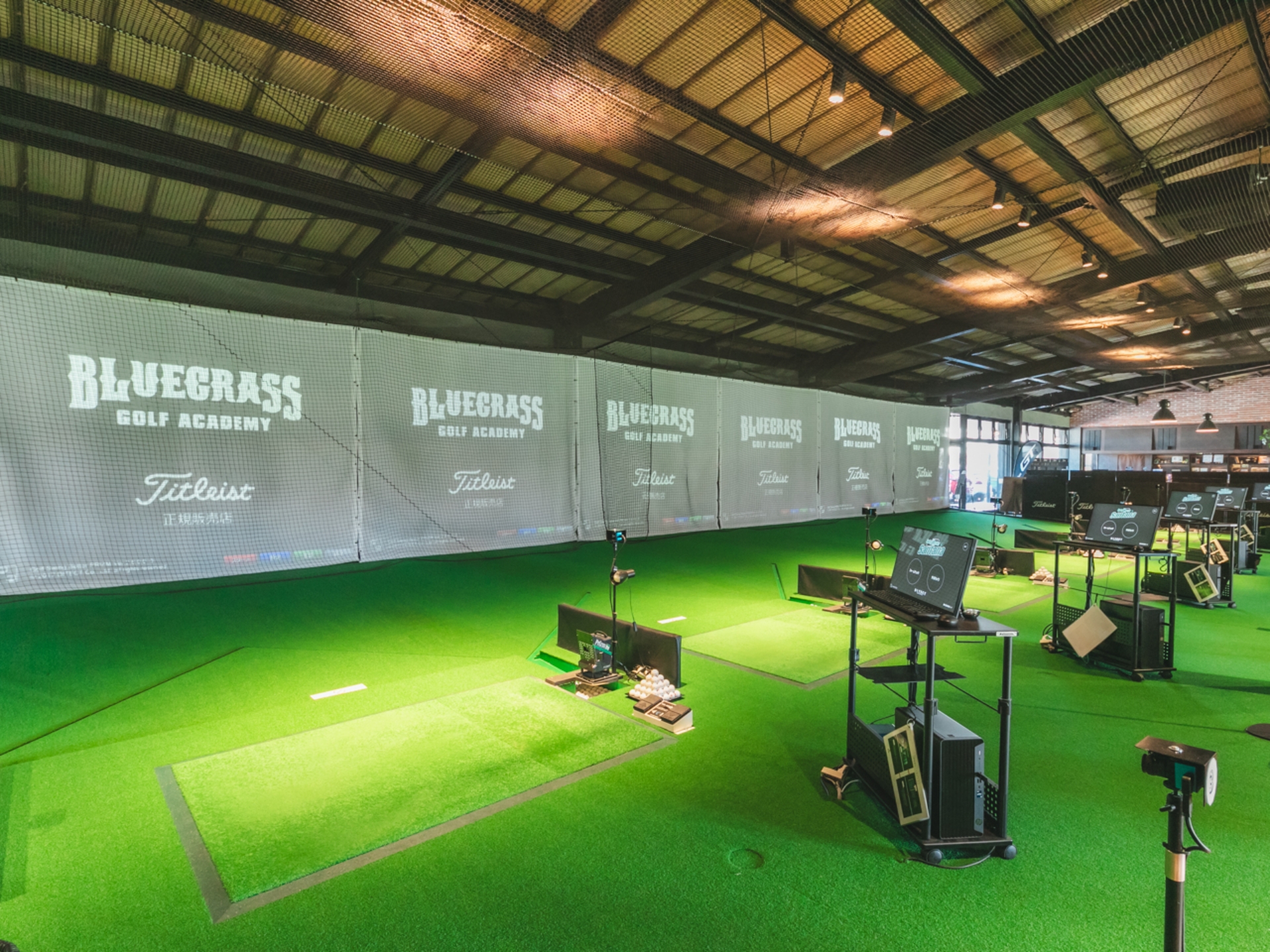 「ガーデンゴルフ」のスタートハウスとしての施設に加えて、全8打席に弾道計測器を設置したインドアゴルフも併設。